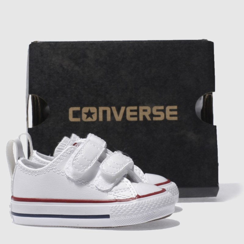 Getting your little one ready has never been easier thanks to the Converse All Star 2V. Arriving in white, this man-made plimsoll features hook-and-loop fastening straps for a no-fuss wear. Iconic red and navy branded sole unit completes.