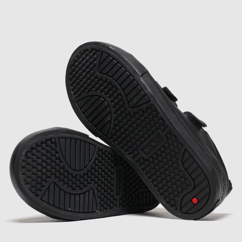 Tough black school shoes are a must for active little feet so trust Kickers and this Tovni Twin Kids^Footwear' trainer. The all-black profile boasts a leather upper, padded ankle collar and easy fasten touch straps.