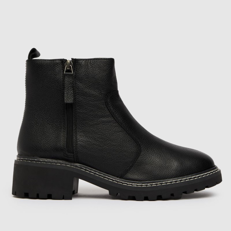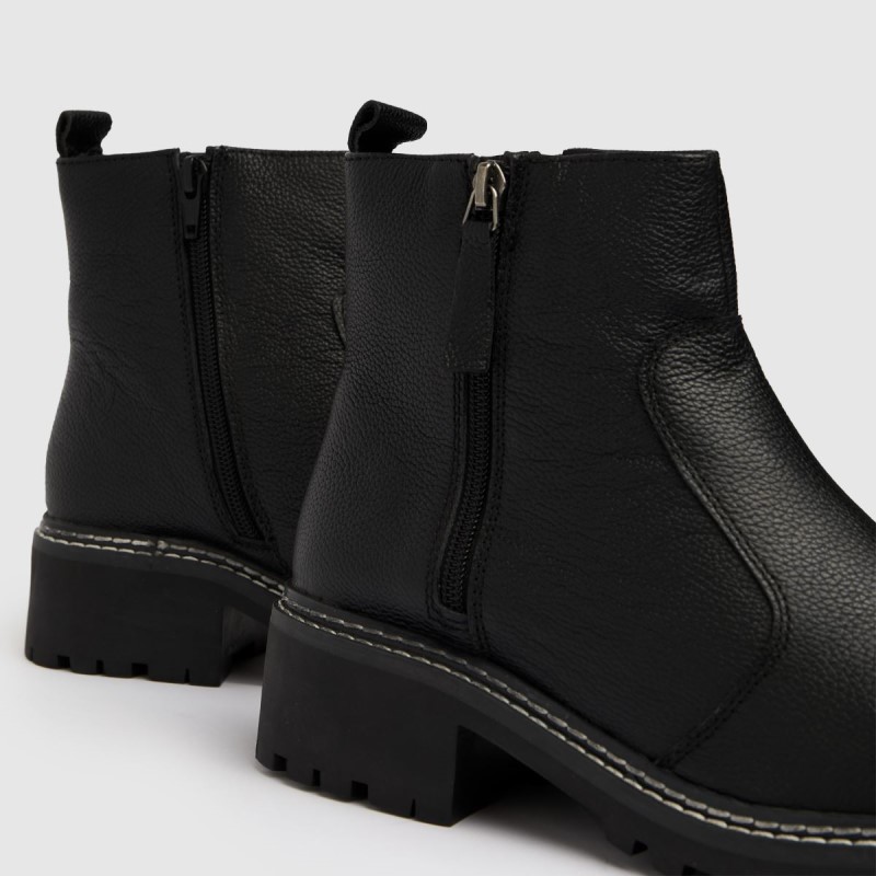 Get ready for boot season with the Alba Leather Chunky Boot! This profile lands in a premium black leather upper with a textured finish, statement silhouette and easy zip closure.
