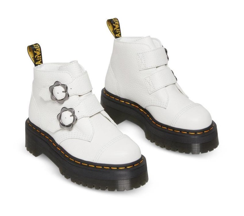 A collision of tough gunmetal hardware and a rugged Quad Retro sole 窶・our new Devon Flower boot showcases our Relaxed Utility colour palette in white. An evolution of our smash-hit Devon Heart, the boots are built from soft Milled Nappa leather and enhanced with two straps with flower-shaped buckles, as well as a puritan stitch toe cap and signature DM窶冱 markings. They窶决e welted on a 1.85窶・Quad Retro sole, reinforced with our iconic yellow stitch. Dr.Martens NZ