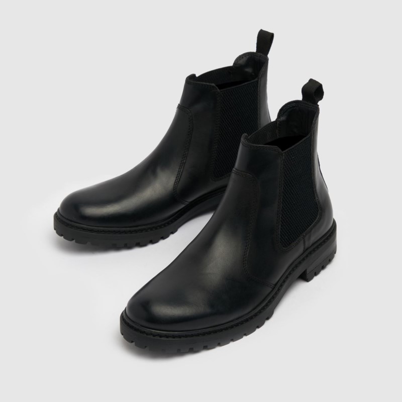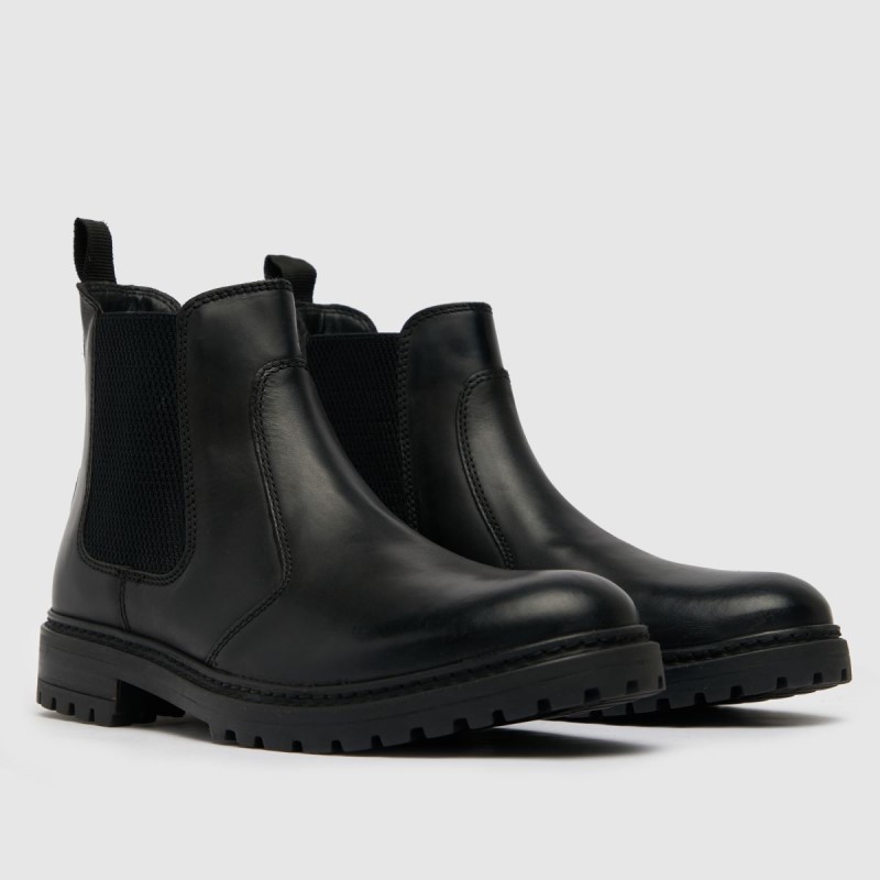 Get this seasons upgrade right here! The schuh Daniel Chelsea Boot boasts a black leather upper with elasticated sidewalls to keep these real comfy. This sophisticated fit is on our love list.