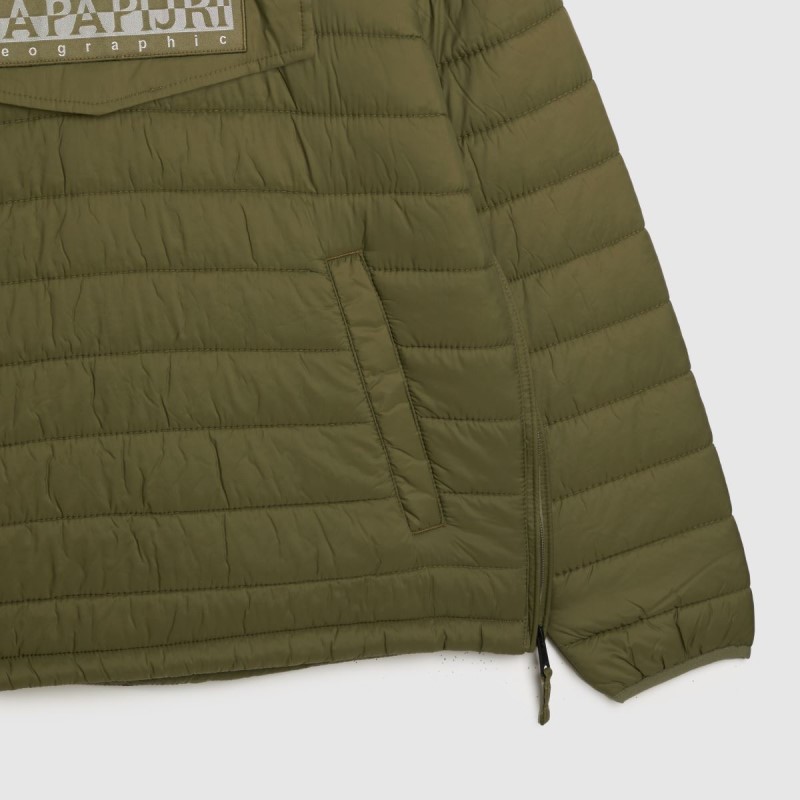 Get ready for the new season with Napapijri! The Morgex Half Zip Jacket boasts a green 100% recycled fabric material with pockets, zipper and adjustable hem. The quilted style provides warmth and style! Iconic branding completes.