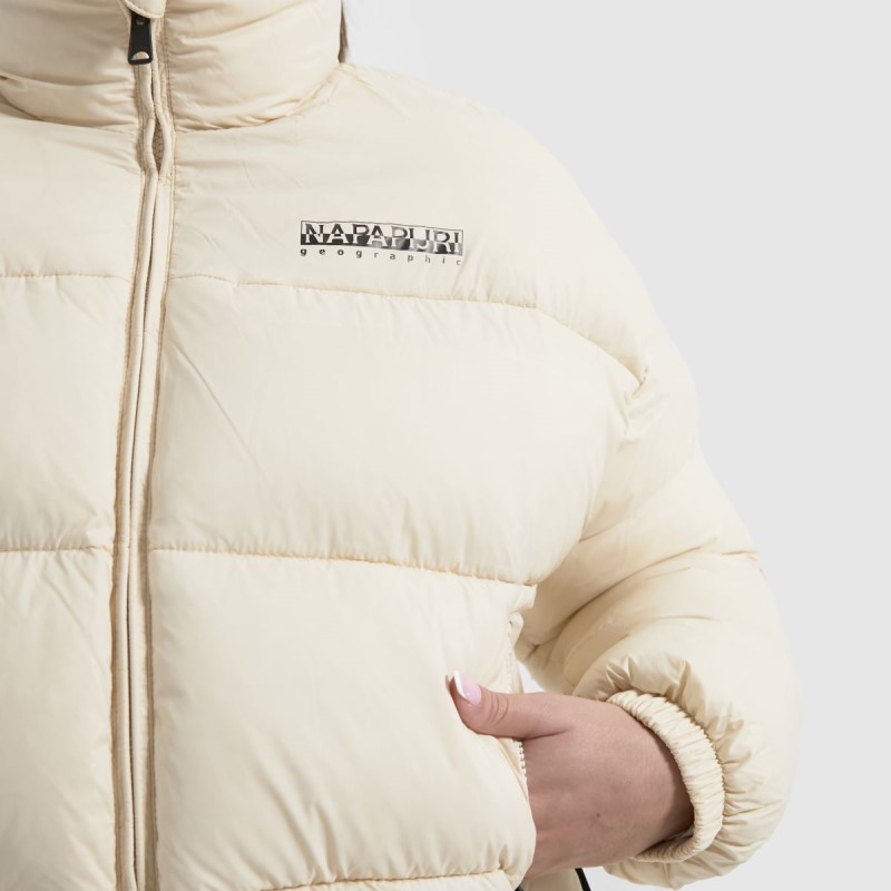 Get ready for the new season with Napapijri! The Box Jacket boasts a natural 100% recycled fabric material with pockets, zipper and elasticated trims. The quilted style provides warmth and style! Iconic branding completes.
