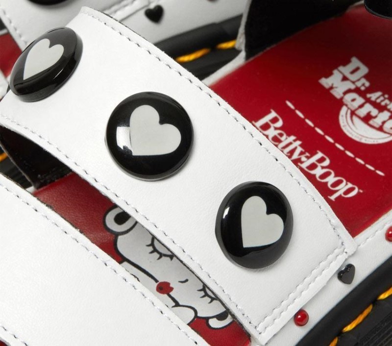 Be more Betty. Trailblazing and ahead of her time, Betty Boop symbolised liberation. Vulnerable. And strong. Feminine. And tough. Our collaboration with Betty Boop celebrates what it means to be both. To be everything. Drawing on the independent, defiant spirit that defines Betty Boop and underpins the DM窶冱 ethos, we窶况e reworked three of our unapologetic silhouettes with an unmistakable Betty Boop stamp.Something a little different and no less bold - we窶况e rebuilt our Clarissa II Quad sandal using a synthetic, vegan friendly Kemble material in optical white. Stacked on our chunky Quad Shore sole. Detailed with domed heart-motif resin studs across the top strap and black heart and red stud rivets above the welt. The sandal is finished with a contrasting red footbed, branded Betty Boop swing tag and black hardware. Distinctly DM窶冱, the Clarissa II Quad is marked with signature DM窶冱 yellow welt stitching and a scripted AirWair heel loop. Dr.Martens NZ