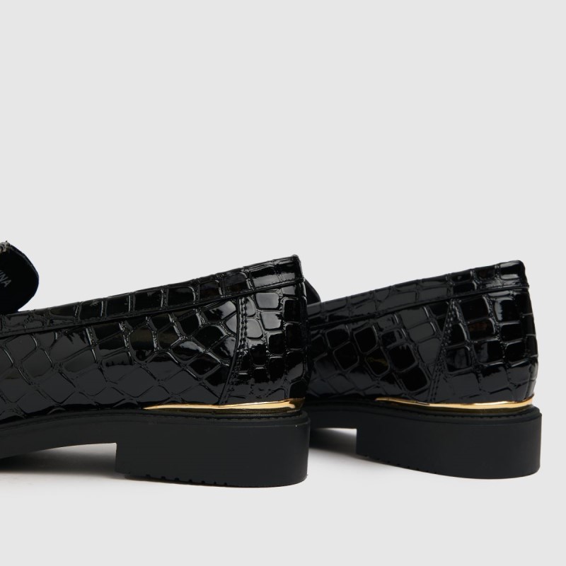 The Lenzo Croc Leather Loafer is a classic and on-trend addition that every wardrobe deserves! Crafted from a black patent upper paired with a grippy rubber outsole and finished with tassel detailing.