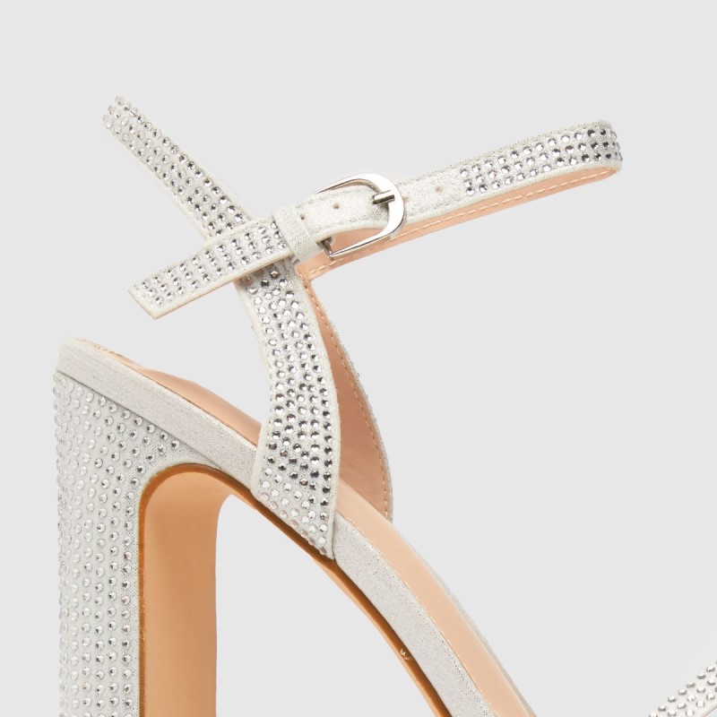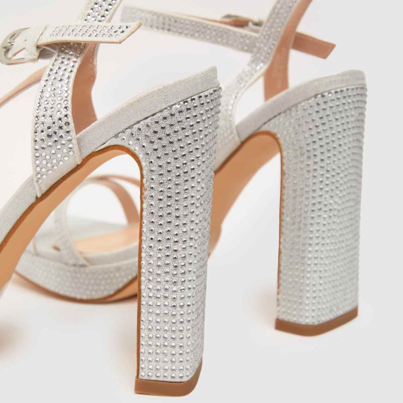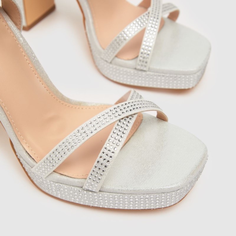 The Saffron Embellished Platform Heel is definitely going to turn heads. Brining all the sparkle with an all-over embellished design in a silver colourway. Featuring a crossover strap design, block heel and secure fastening ankle strap to complete!