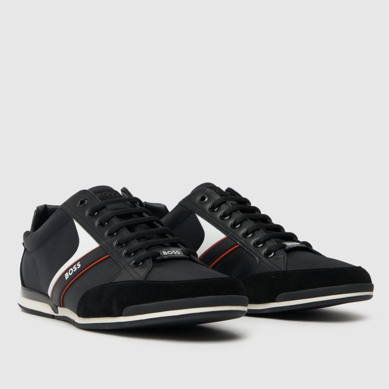 Give your look an upgrade with the BOSS Saturn Low. This practical fit features a black and white suede upper, constructed in a low rise silhouette. These dynamic trainers are sat on a rubber sole with a rounded toe and lace up closure.