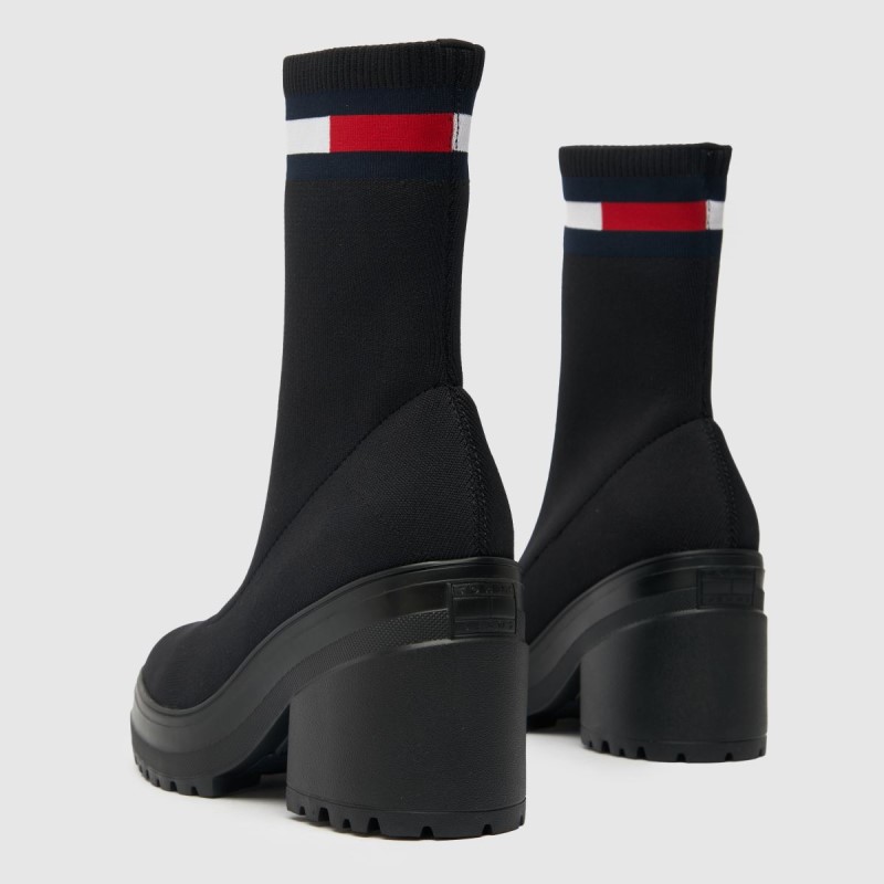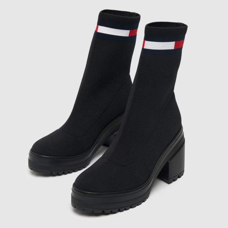 Boot season is back and Tommy Jeans is providing the goods! The Knitted Boot boasts a sleek black, water resistant recycled polyester upper, chunky block heel and iconic branding. This fit is chic and sophisticated - we rate it!