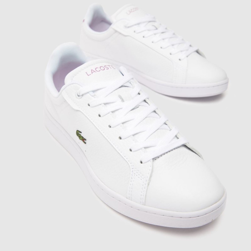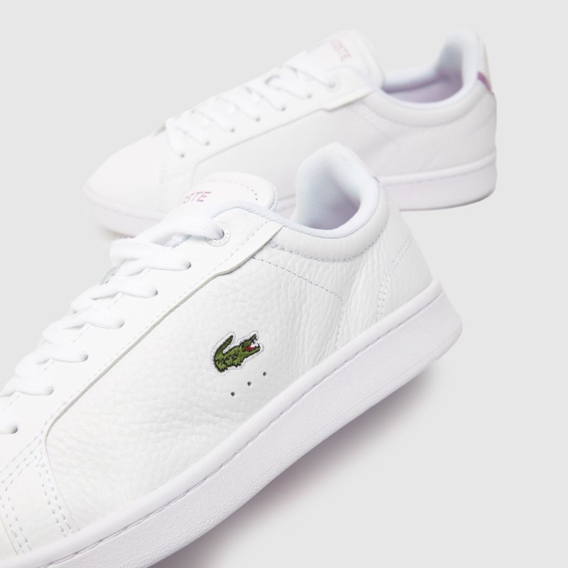 Freshen up your look with these timeless kicks. The Lacoste Carnaby Pro sneaker boasts a white leather upper, rubber outsole completed with Crocodile branding embossed.