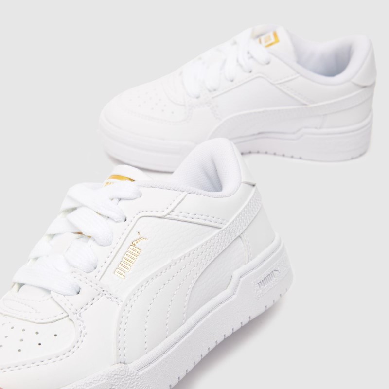 The PUMA CA Pro Classic is the perfect addition to the kid' collection! This sleek white junior man made trainer boasts classic stitched panels, white rubber sole and PUMA branding - the ultimate weekend fit!