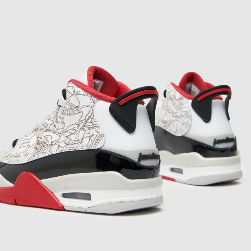 Level up their courtside style with the youth Nike Air Jordan Dub Zero! Boasting a white and black graphic print upper with bright red accents and visible air sole unit. This legendary silhouette takes street style to a whole new level!