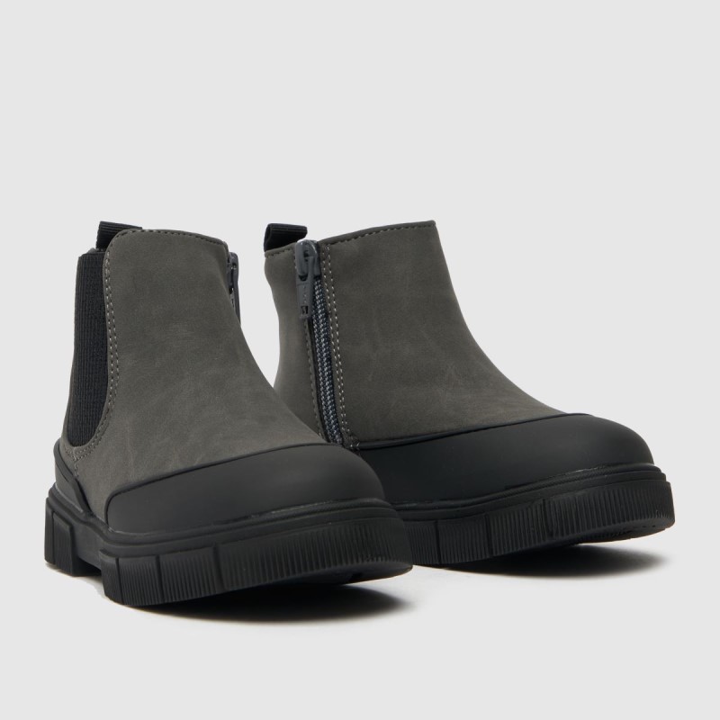 Your little one can nail the new season trends just as good as you! The toddler Curious Chelsea Boot from schuh lands with an easy pairing grey man-made upper, rubber outsole and toe overlays to prevent those scuffs! Slip-on profile ensures no-fuss wear.