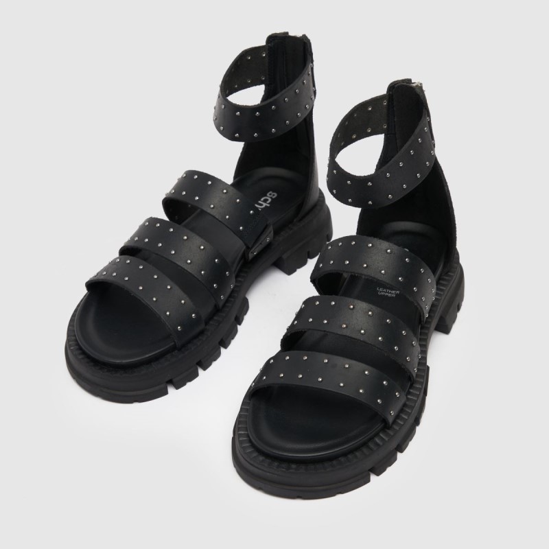 Get your gladiator sandal fix with schuh! Introducing the Tyler Chunky Studded Sandal, featuring a black leather upper with studded strap detailing and a zip fastening for a secure fit. Ready to add edge to summer look!