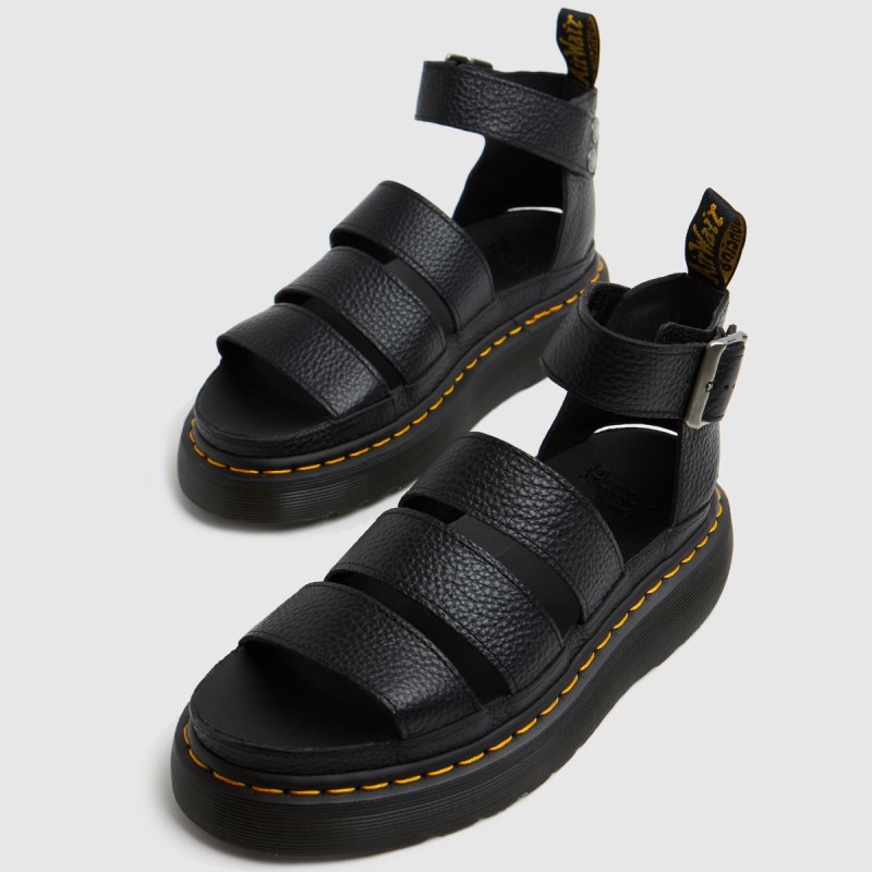 Get summer ready with Dr. Martens. The Clarissa Quad sandal boasts a black leather upper in a cage strap design for ultimate comfort and support on any sunny outing. Complete with signature branding.