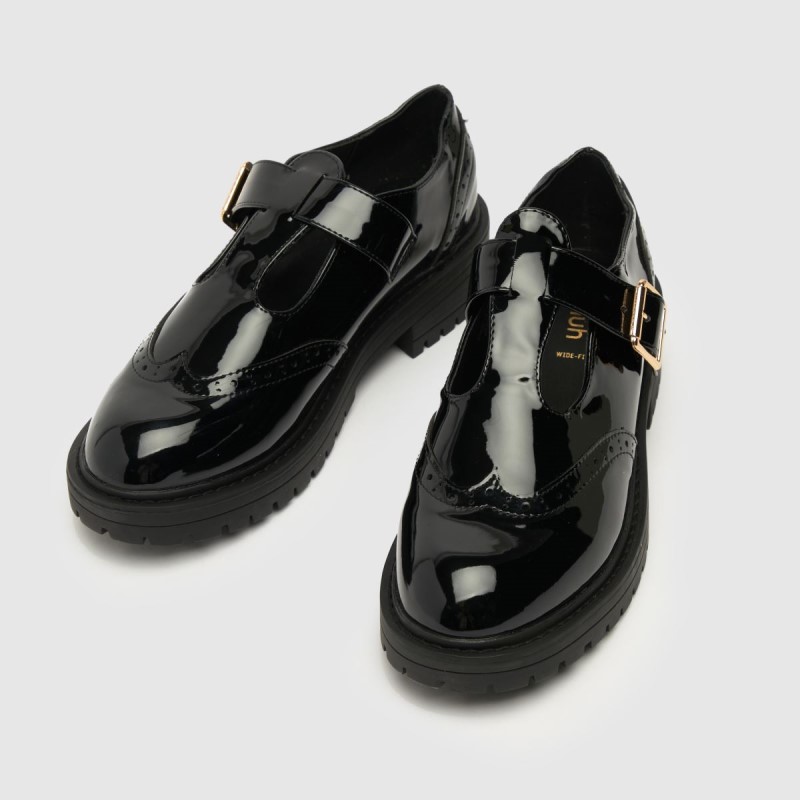 The Luca Patent T Bar Shoe arrives to upgrade your everyday look! Featuring a wide fit silhouette, a versatile black patent upper with an easy buckle fastening and comfortable footbed. A chunky rubber sole completes the look.