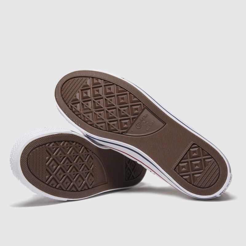 No converse collection is complete without this fit! The Chuck Taylor All Star Ballet Laces Slip boasts a white fabric upper lined with red and blue stripes for that original varsity feel. Complete with Converse branding.