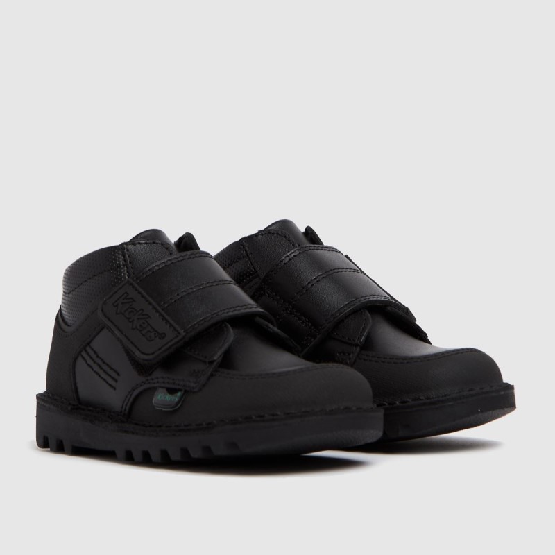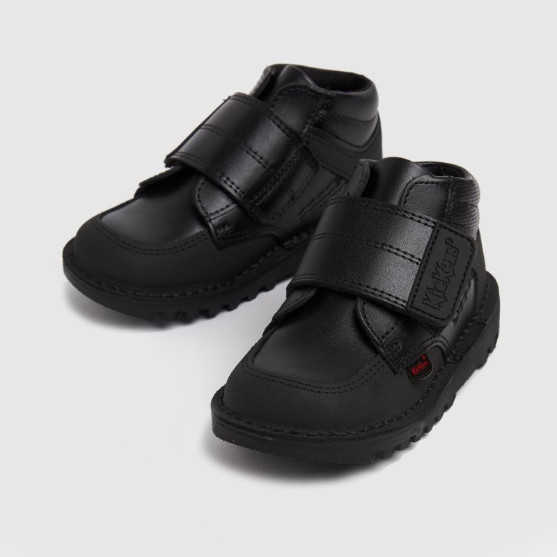 Arriving in a mid-length, the Kickers Scuff is a classic profile for every school year! This school shoe boasts a black leather upper paired with an easy strap fastening and durable sole for all the playground fun.