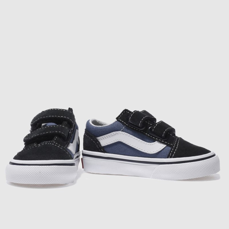 Knocking around since '77, the Vans Old Skool is now here for toddlers. The iconic silhouette arrives in the classic tonal blue and white colourway and is constructed from fabric and suede. Touch fastening closure and a vulcanised sole complete.