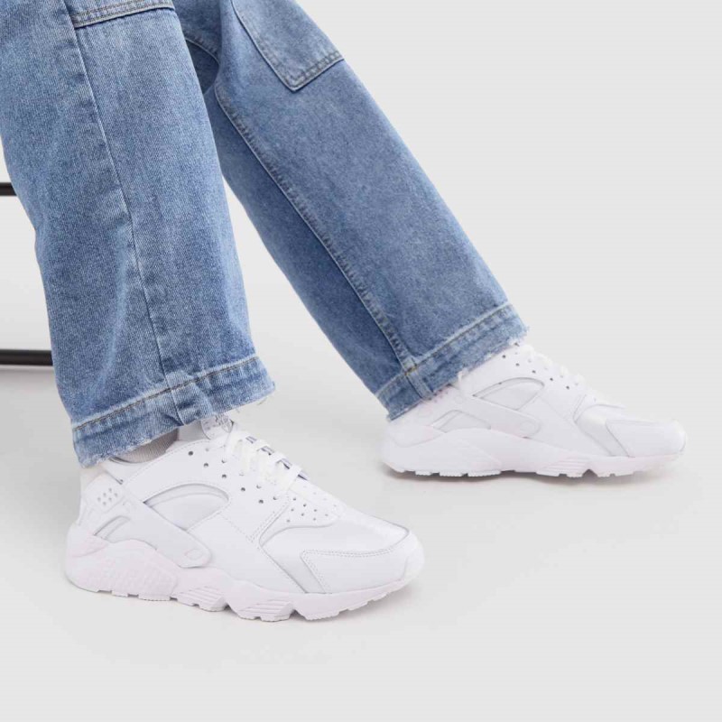 Step up your sneaker game with the latest drops from Nike! The Nike Huarache lands in a sleek white breathable man-made upper. The iconic heel clip, classic branding and a grippy tread complete this must-have fit.