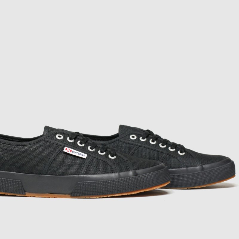 A perfect choice for the warmer months, Superga are always on hand with staple plimsolls. The black fabric 2750 Cotu Classic will see you through any occasion with a versatile look. Signature tab branding and a gum rubber sole complete.