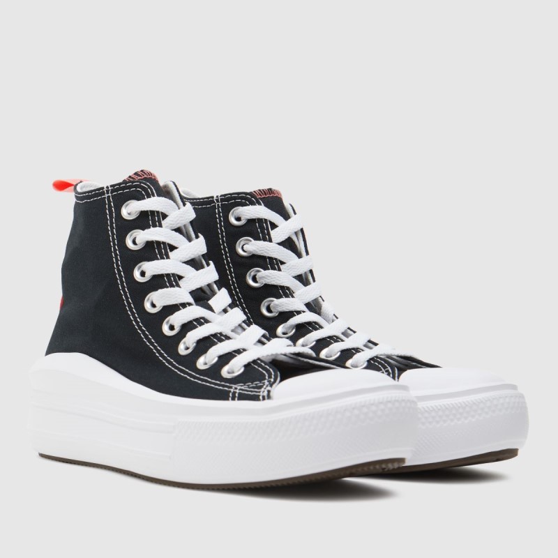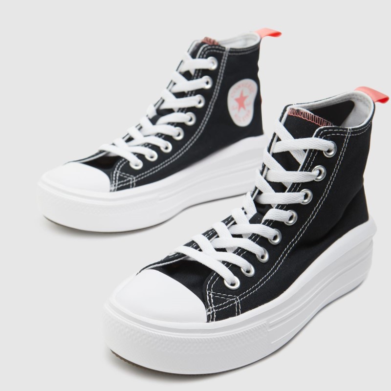 Now this is what we call platform! The Kids^Footwear' Converse Chuck Taylor All Star Move Colour Pop lands in a black fabric upper with a stacked vulcanised rubber midsole and cute pink accents for a summery feel. Lightweight and on-trend - it really is perfect.